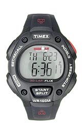 Timex Men's T5H581 Ironman Traditional 30-Lap Watch Specifications : Keep your sports training focused with this full-sized, shock-resistant Timex Ironman Triathlon multi-function sport digital watch (model T5H581), which features a 30-lap memory, a durable black resin case, large buttons for easy access to timing functions, and a comfortable polyurethane strap. It also offers water resistance to 100 meters (330 feet), three alarms (with 5-minute backup), and three time zones. Other features include a top pusher for easy access to lap and split times, an occasion mode to set reminders for birthdays, anniversaries, holidays and appointments, and all-day white reflector display. Sport timing functions include:- 100-hour chronograph with lap or split option in large digits